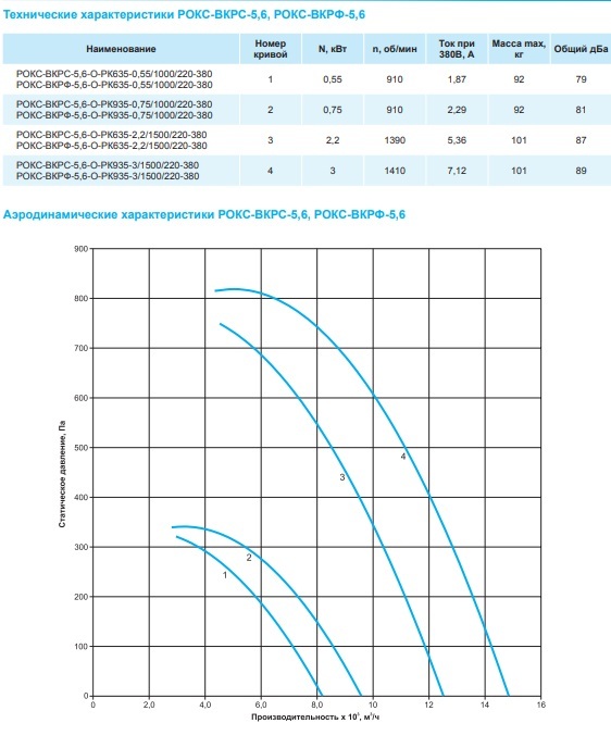 Вентиляторы выпускают с двумя типами рабочих колес РК635 и РК935 с различными расходными характеристиками.