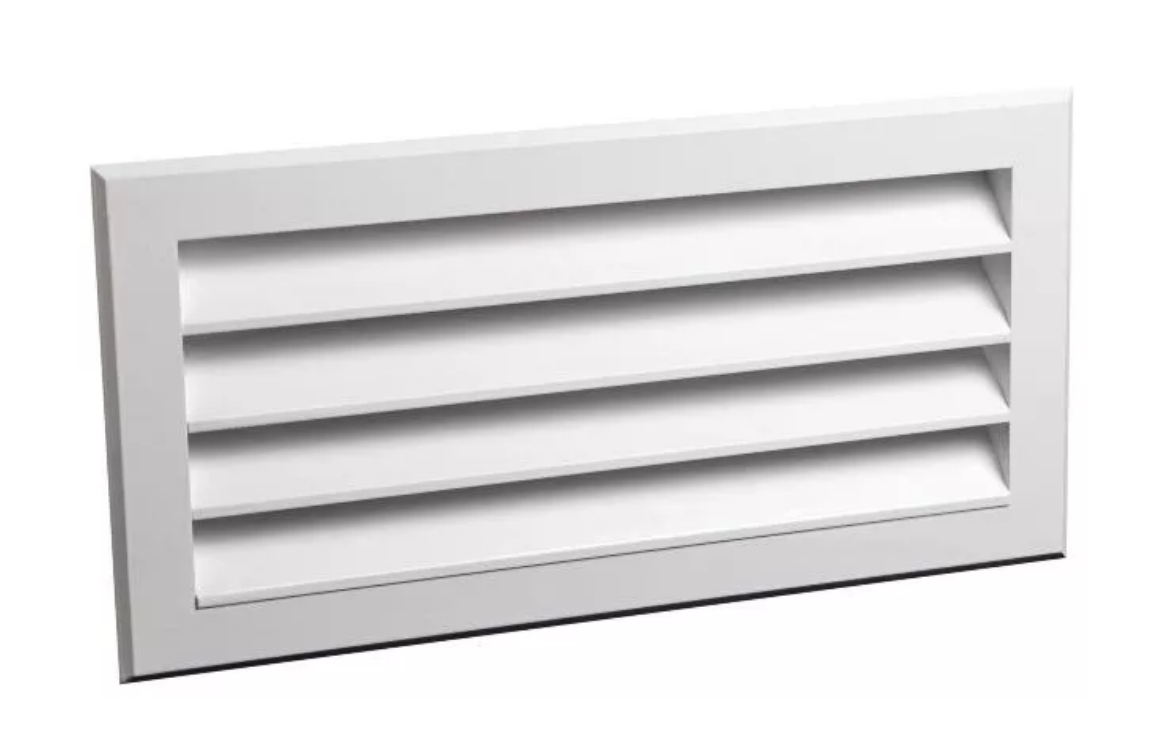 Решетки EAL- алюминиевые решетки для наружной установки, покрашены методом порошкового напыления в белый цвет (RAL 9016). Живое сечение составляет 41% от площади решетки. Жалюзи расположены под углом 45 градусов, что исключает попадание воды или снега через решетку.